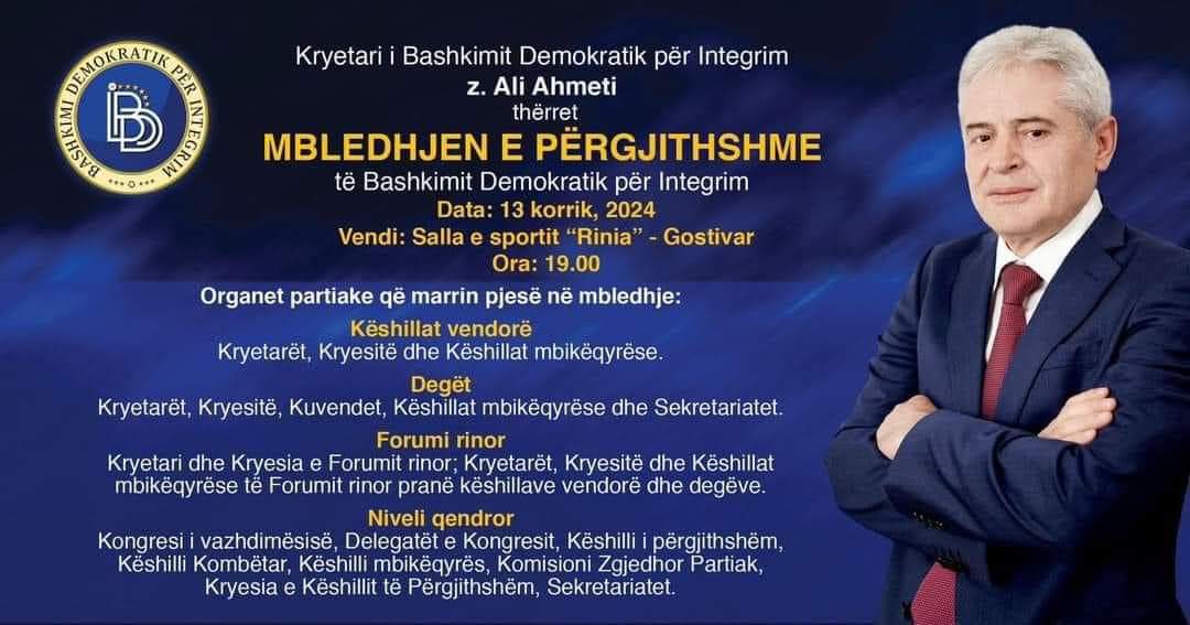 Qyteti i lashtë i Gostivarit, me 13 Korrik 2024, do të jetë qyteti mikëpritës i tërë strukturës politike, ku do të zhvillojë punimet Mbledhja e Pergjithshme historike e BDI-së!