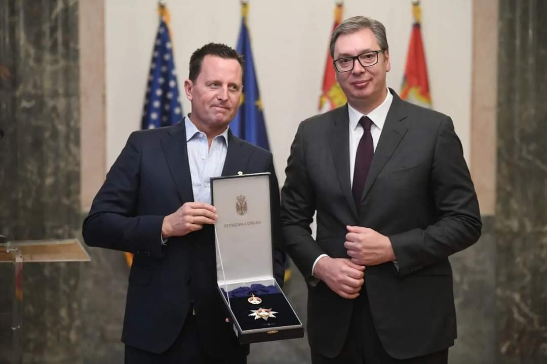 Presidenti i Serbisë, Aleksandar Vuçiq, i ka ndarë një çmim Richard Grenellit, të dërguarit amerikan për dialogun ndërmjet Serbisë dhe Kosovës gjatë administratës së Donald Trump.