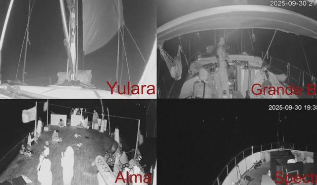Kamerat e anijeve tregojnë flotën Sumud duke iu afruar Gazës teksa mbajnë ndihma humanitare për civilët palestinezë, ndërsa organizatorët dhe autoritetet izraelite monitorojnë përparimin e konvojit në Detin Mesdhe lindor.