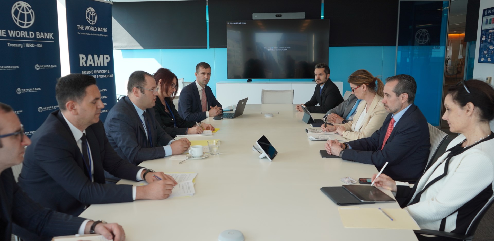 Guvernatori i Bankës Qendrore të Kosovës, Ahmet Ismaili, i shoqëruar me bashkëpunëtorët e tij, u mirëprit në selinë e Bankës Botërore nga zëvendëspresidenti dhe njëherësh drejtuesi i Thesarit i BB-së, Jorge Familiar, për të zhvilluar diskutime të frytshme që lidhet me menaxhimin e rezervës dhe iniciativat tjera për ngritjen e kapaciteteve të institucionit që ai drejton.