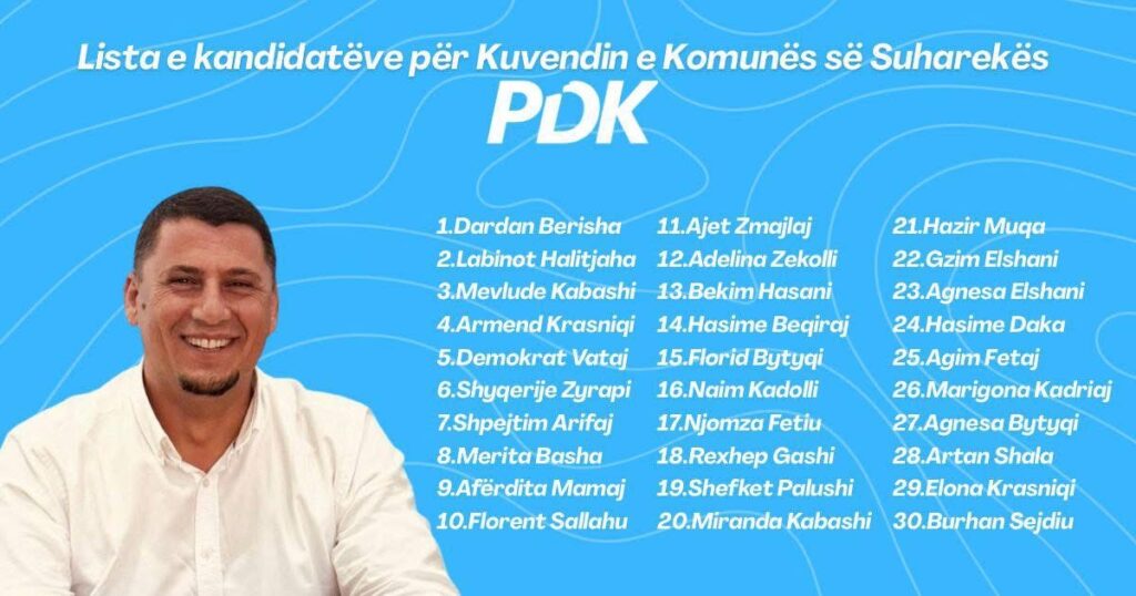 Me nder e përgjegjësi ju njoftoj se jam kandidat për asamblenë komunale të Suharekës me numrin 22, nga PDK – dega Suharekë.