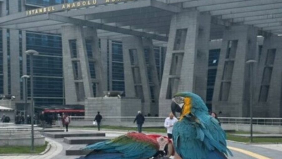 Fotoja e dy papagajve në hyrje të gjykatës së Stambollit është bërë virale, për faktin se ata janë bërë pjesë e një gjyqi për çështje divorci.