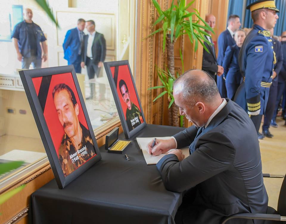 Kryeministri Ramush Haradinaj ka bërë homazhe në hollin e Kuvendit të Kosovës në nderim të dëshmorëve Ahmet Krasniqi dhe Qazim Jakupi.
