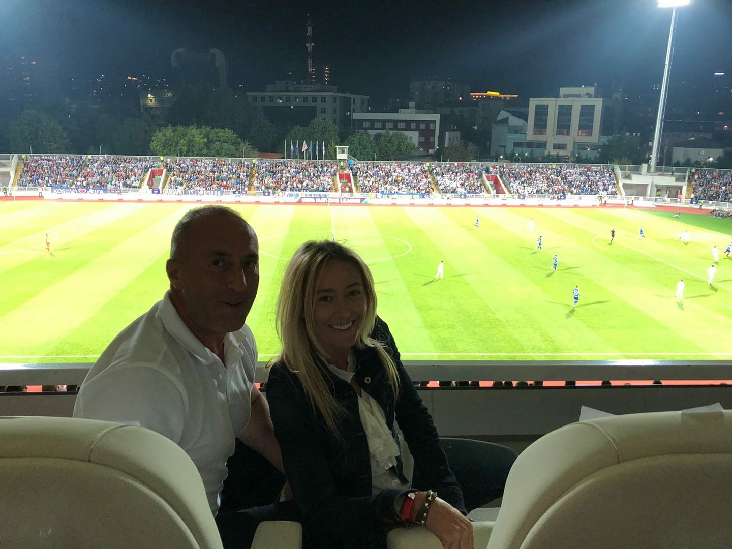 Haradinaj me Anitën në stadiumin “Fadil Vokrri”