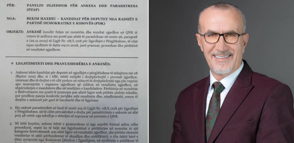 Bekim Haxhiu, kandidati për deputet i AAK-së në zgjedhjet e 28 dhjetorit, ka bërë të ditur se ka dorëzuar ankesë zyrtare në Panelin Zgjedhor për Ankesa dhe Parashtresa, duke akuzuar Komisionin Qendror të Zgjedhjeve për shkelje serioze të ligjit zgjedhor.