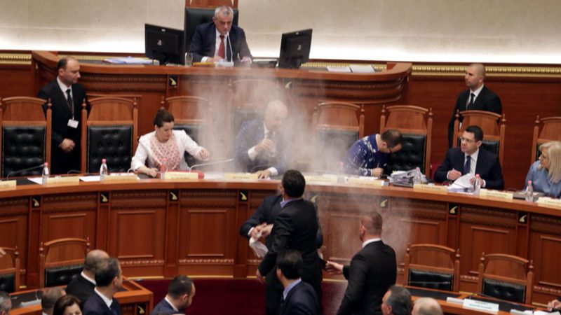 Opozita në Shqipëri e ka mbajtur të bllokuar foltoren e Kuvendit dhe nuk lejoi vazhdimin e saj, duke kërkuar përjashtimin më parë të kryeministrit Edi Rama.