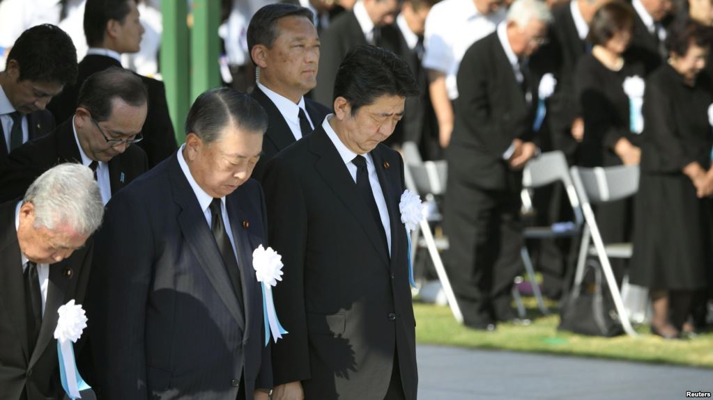 Të mbijetuarit, familjarët dhe pjesëmarrësit tjerë kanë shënuar përkujtimin me një minutë heshtje në orën 8:15, në kohën kur ka ndodhur sulmi më 1945.