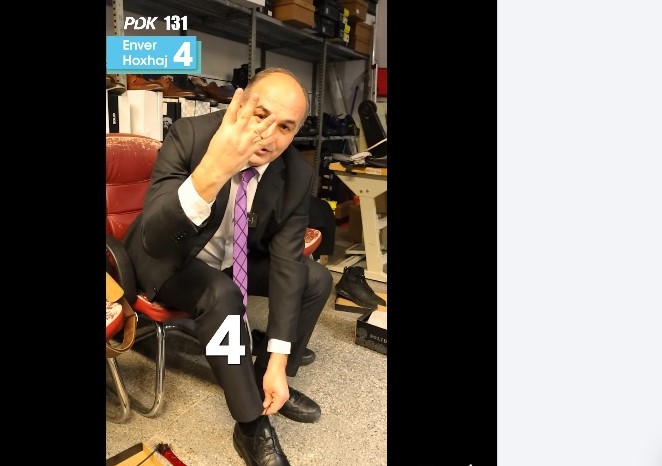Kandidati për deputet i PDK-së me numër 4, Enver Hoxhaj, ka postuar një video në “Facebook” ku shihet duke mbathur këpucë të reja nga Solidi.