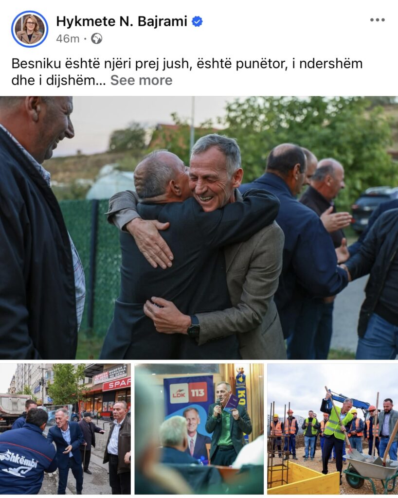“Besnik Osmani është njeriu që nuk flet shumë, por punon pa ndalë me përkushtim, kujdes e ndershmëri. Është modest dhe gjithmonë pranë qytetarëve,” ka shkruar Bajrami.