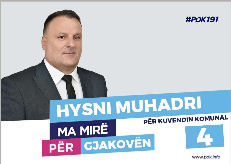 Hysni Muhadri, aktualisht drejtor i Inspektoratit në Komunën e Gjakovës, ka garuar me numrin 4 në listën e Partisë Demokratike të Kosovës (PDK) për Asamblenë Komunale.