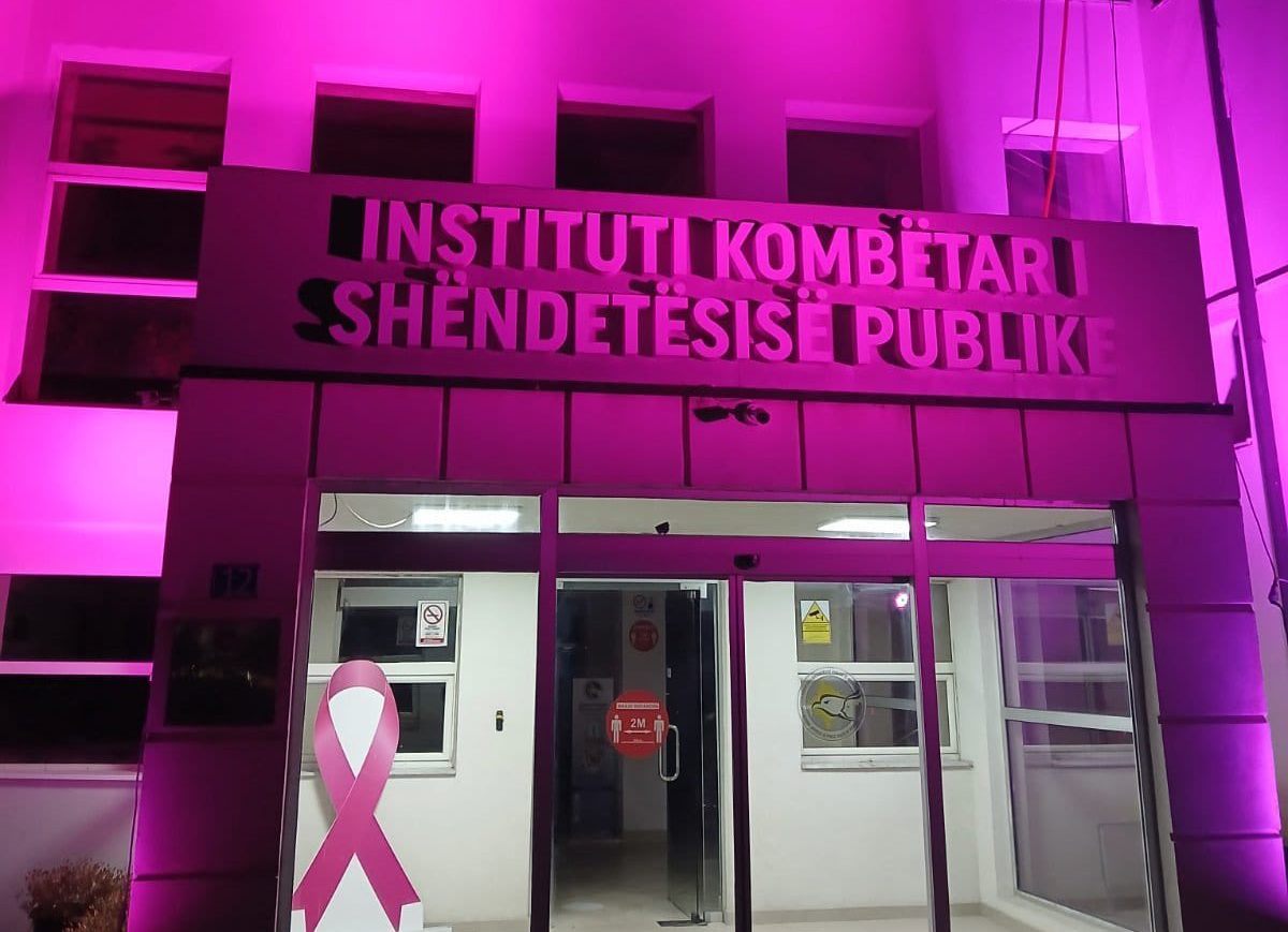 Instituti Kombëtar i Shëndetësisë Publike është ndriçuar me ngjyrë rozë për të shënuar muajin e ndërgjegjësimit ndaj kancerit të gjirit.
