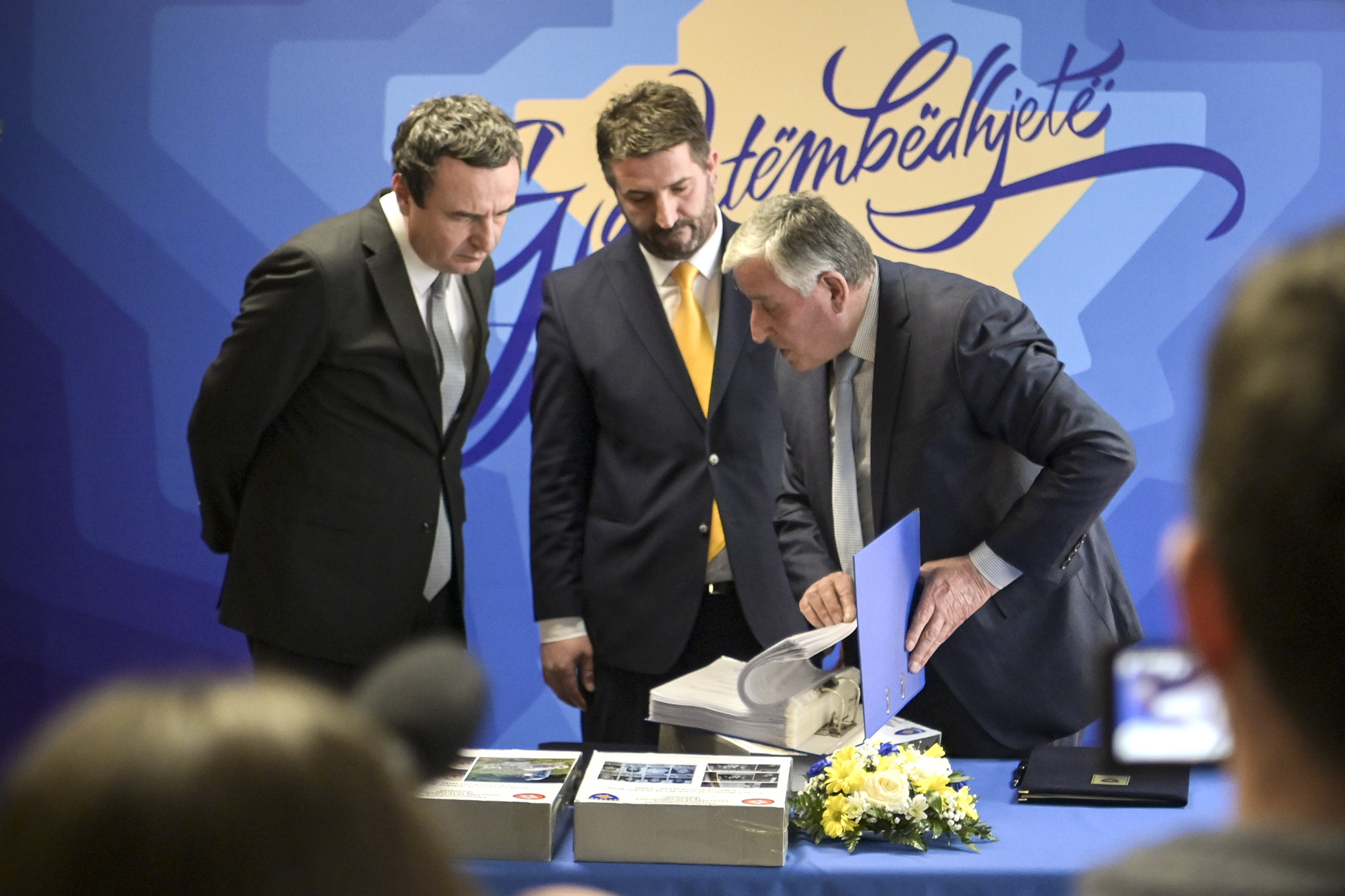 Jemi në hapësirën e Institutit për dokumentimin e krimeve të kryera gjatë luftës në Kosovë, me Drejtorin Ekzekutiv, Atdhe Hetemi, dhe me Kryetarin e Këshillit Koordinues të Asociacioneve Familjare të të Zhdukurve të Kosovës, Ahmet Grajçevci, për ceremoninë e pranim dorëzimit të dokumenteve të para në këtë institut.