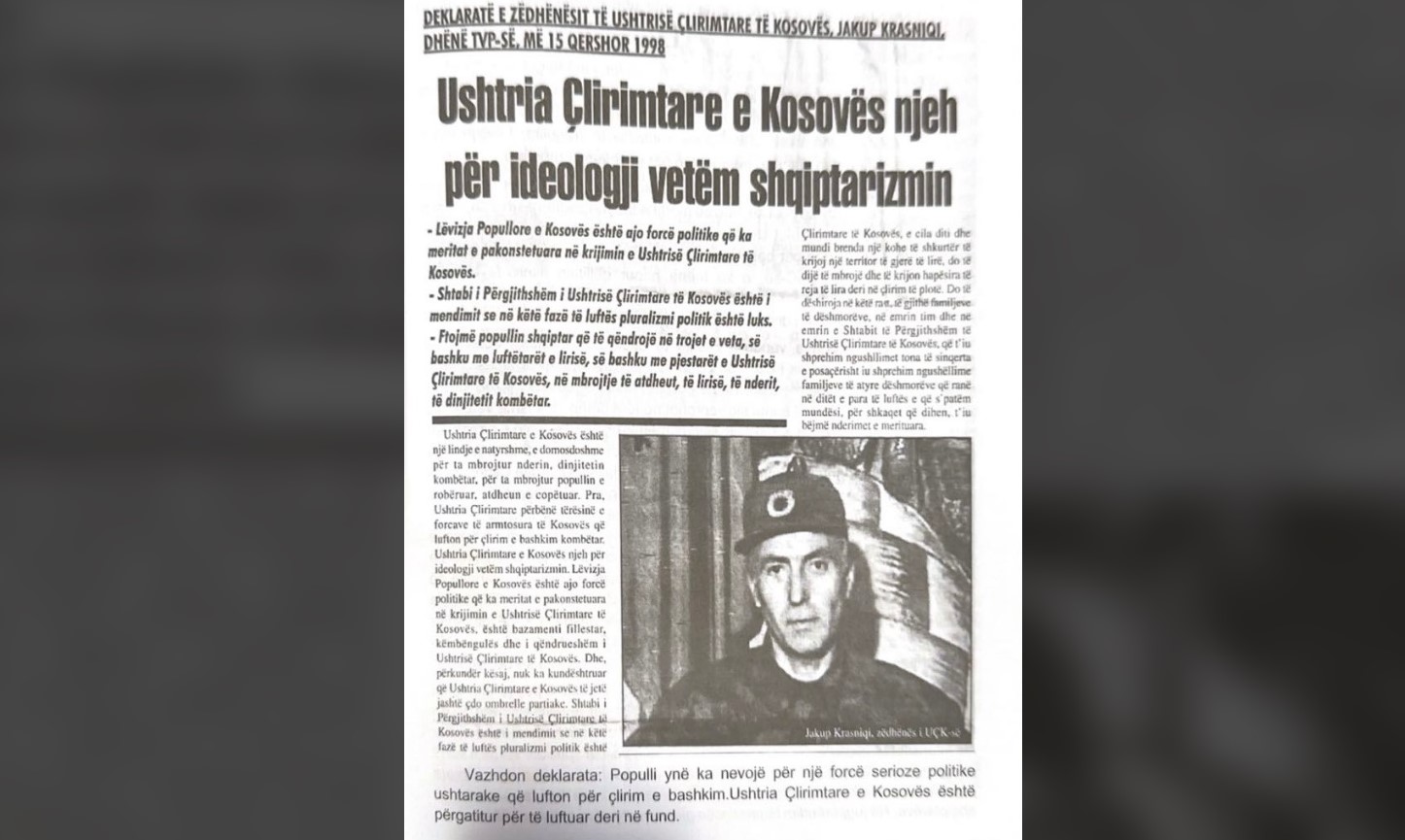 Në këtë deklaratë, ai sqaroi se LPK-ja ishte forca politike që kishte merita të pakontestueshme në krijimin e Ushtrisë Çlirimtare të Kosovës dhe megjithatë nuk ka kundërshtuar që UÇK-ja të mbetej jashtë çdo ombrelle partiake.