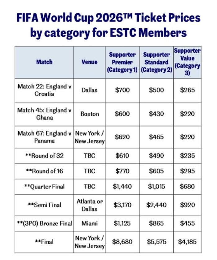 Ata llogaritën gjithashtu se nëse një tifoz dëshiron të shikojë të gjitha ndeshjet e Anglisë, përfshirë finalen, do të duhet të shpenzojë të paktën 5,956 euro për tetë ndeshje nëse blen biletat më të lira, ndërsa në versionin e blerjes së biletave më të shtrenjta, kjo shifër shkon deri në 14,085 euro.