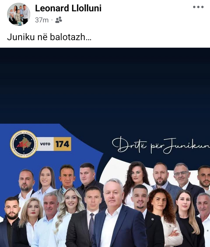 Kryetari i degës së AAK-së në Junik, Leonard Llolluni, ka shkruar në “Facebook” se Juniku shkon në balotazh.