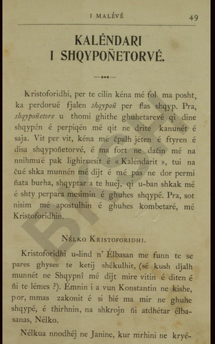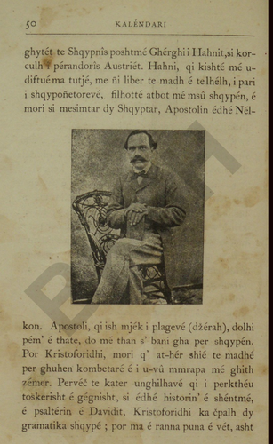 “Kristoforidhi ka përdorë fjalën shqypon për: flas shqip. Pra shqyponëtore u thomi gjuhëtarëve që dinë shqypen e përpiqen me qit në dritë kanunet e saja. Vit për vit kena me shpall jetën e fytyrën e disa shqyponëtorëve e ma fort në daçin me na ndihmue pak ligjëruesit e “kalendarit” tui na çue shka munen me dit e me pas në dorë përmbi ata burra, shqyptar a të huaj që u banë shkak me e shty përpara mësimin e gjuhës kombëtare, me Kristoforidhin”.
