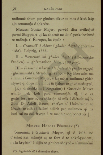 Gazeta “Përlindja” përshkruan edhe për të tjerë albanologë të kohës duke nisur me Emile Legrand, Gustav Meyer, Holger Pedersen etj