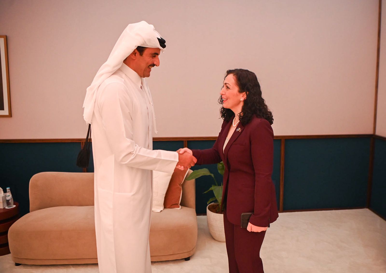 “Lartmadhëria e Tij, Emiri i Shtetit të Katarit, Tamim bin Hamad Al Thani, dhe Lartmadhëria e Tij, Zëvendësemiri i Shtetit të Katarit, Abdullah bin Hamad Al Thani, kanë uruar Presidenten Osmani me rastin e përvjetorit të 18 të Pavarësisë. Në mesazhet e tyre, ata kanë përcjellë urime të sinqerta për Ditën e Pavarësisë së Republikës së Kosovës, duke i dëshiruar Presidentes shëndet dhe mirëqenie, si dhe popullit të Kosovës zhvillim dhe përparim të mëtejshëm. Po ashtu, është shprehur përkushtimi për forcimin dhe thellimin e mëtejmë të marrëdhënieve ndërmjet Republikës së Kosovës dhe Shtetit të Katarit”, thuhet në urimin e shtetit të Katarit.