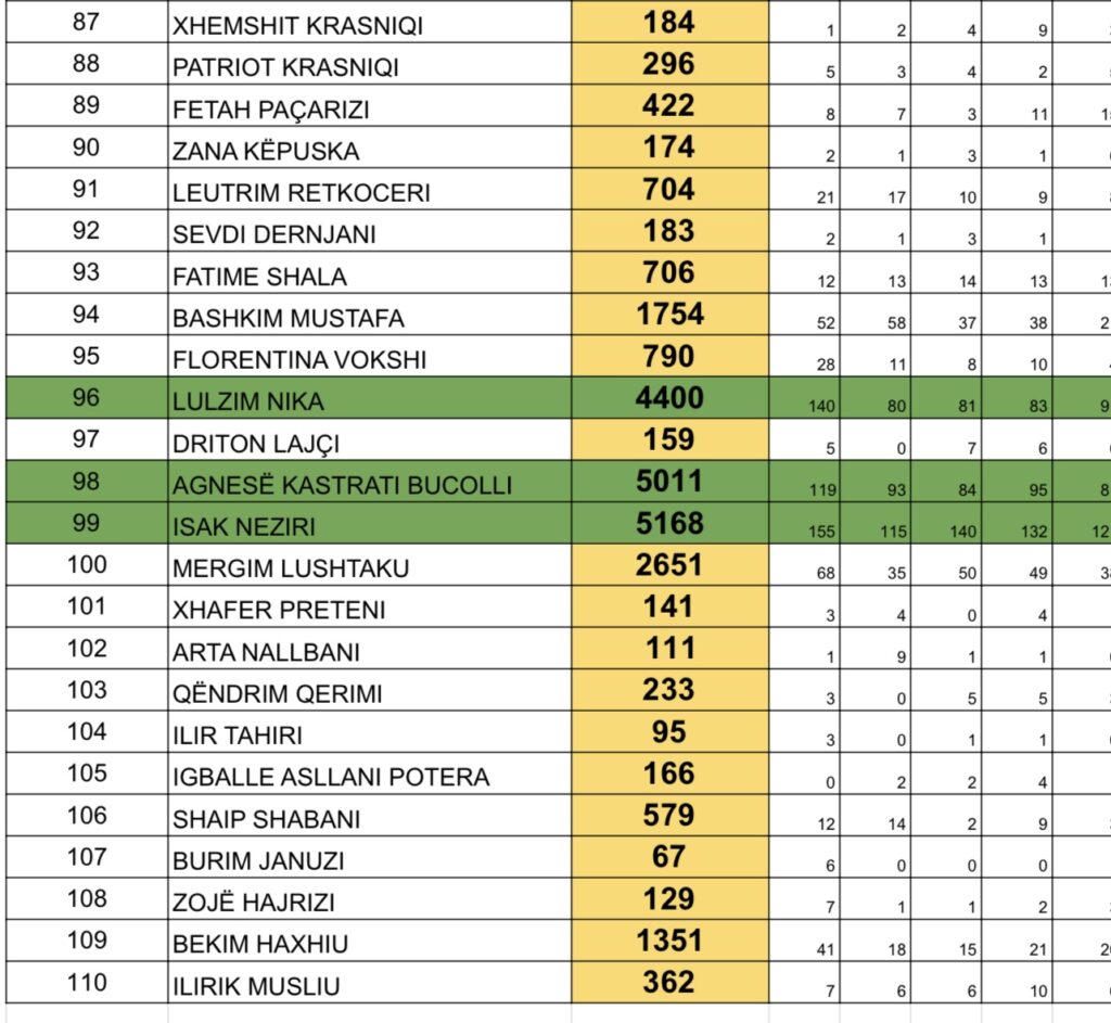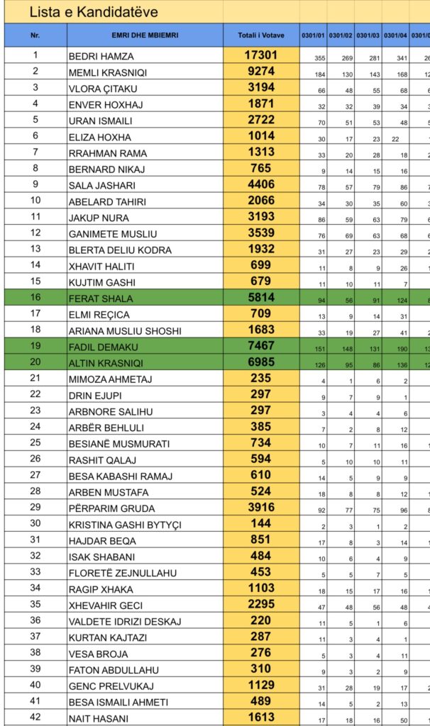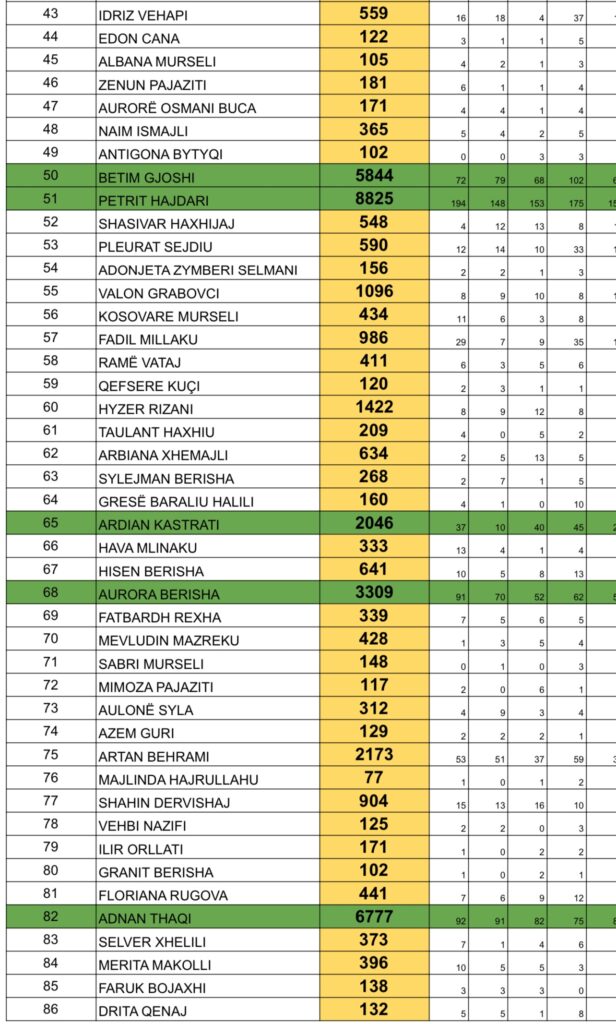 Këto janë votat e kandidatëve për deputetë të PDK-së në Drenas