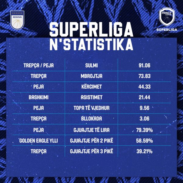 Ndërkohë, mitrovicasit kanë edhe mbrojtjen më të fortë në ligë me 73.83 pikë të pranuara për ndeshje. Sa u përket kërcimeve, lidere është Peja me 44.33, ndërsa me asistime Bashkimi ndodhet në vendin e parë me 21.44 për ndeshje, njofton Federata e Basketbollit të Kosovës.