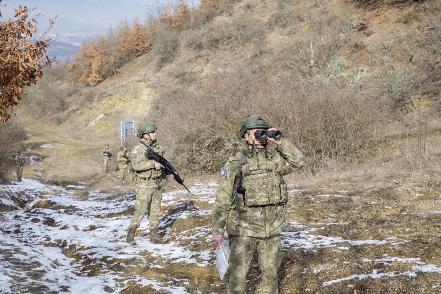 “Ushtarët turq të dislokuar në Kosovë si pjesë e KFOR-it kryejnë një patrullë sigurie përgjatë vijës kufitare administrative.
