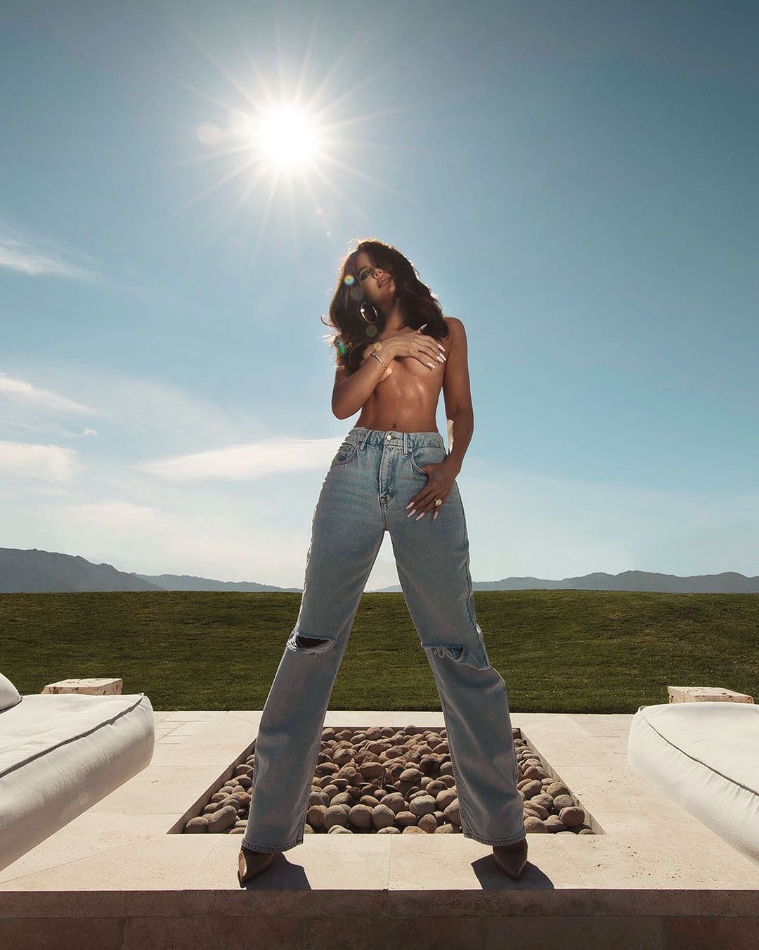 Ylli i Keeping Up With The Kardashian (36), ka pozuar në pishinë në një fotosesion tepër të nxehtë derisa ka thënë se bikinet e saj bëjnë që femrat të “ndihen seksi”.