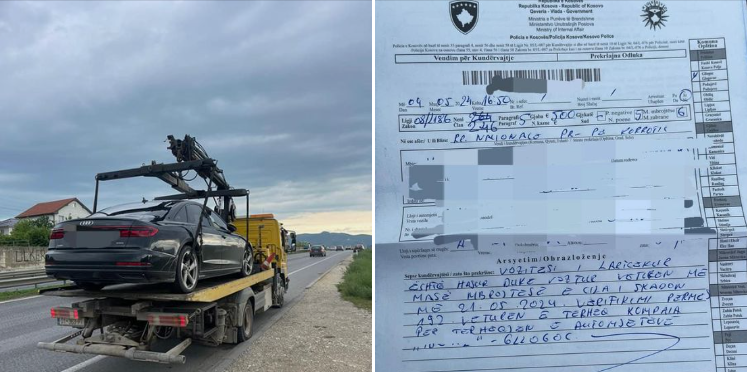 Sipas policisë, i njëjti është gjobitur 500€, 5 pikë negative dhe i është vazhduar masa mbrojtëse edhe për 6 muaj si dhe është konfiskuar automjeti.