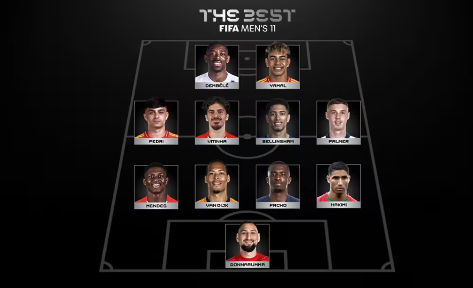 Mesfusha: Pedri, Jude Bellingham, Vitinha e Cole Palmer; derisa sulmin e përbëjnë Lamine Yamal e Ousmane Dembele.