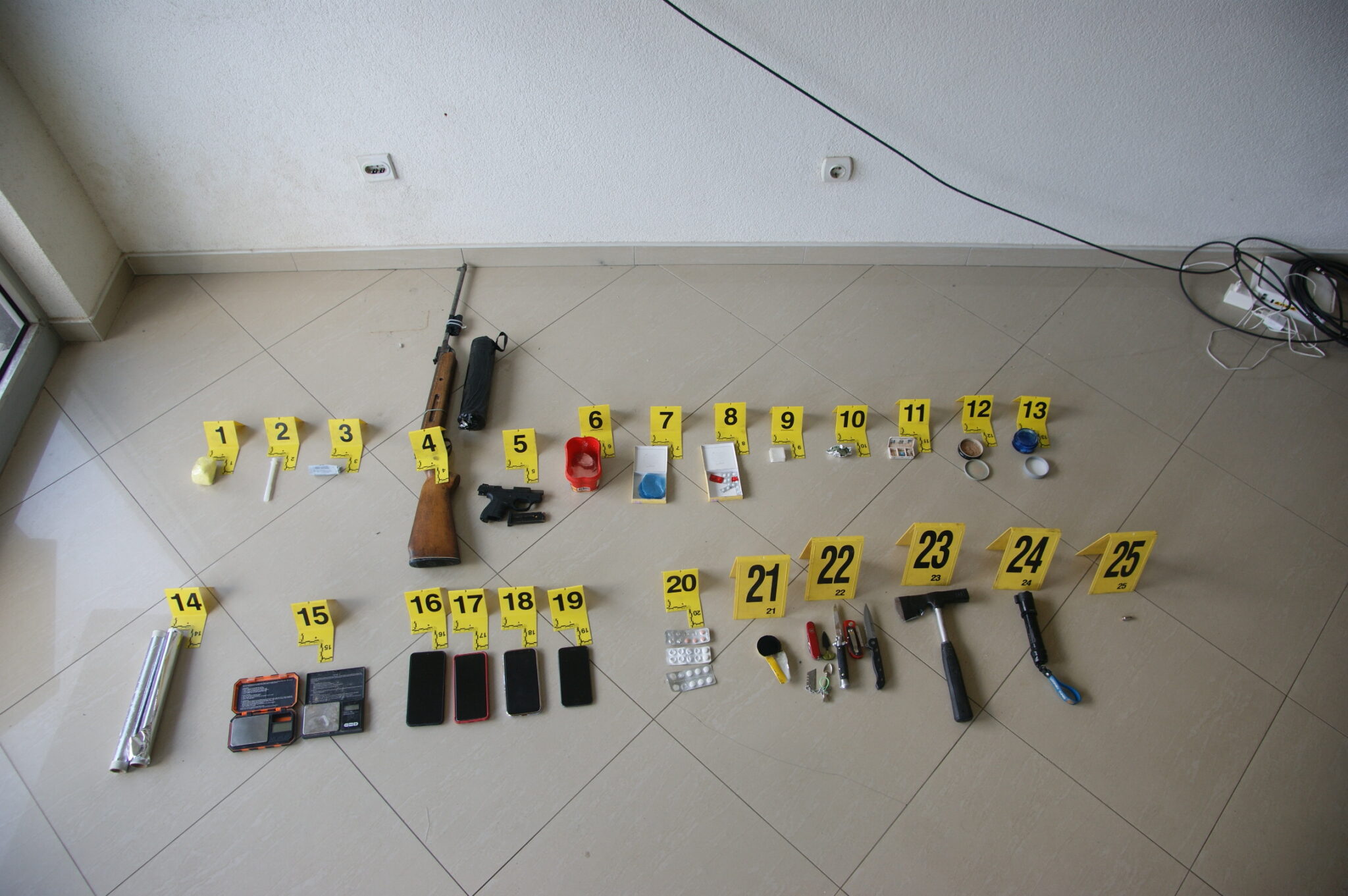 Kokainë, heroinë, armë të ndryshme – çka gjeti sot policia në shtëpinë e 47-vjeçarit në Gjilan