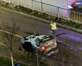 Aksident trafiku në rrugën Fushë Kosovë-Prishtinë, vetura përfundon përmbys