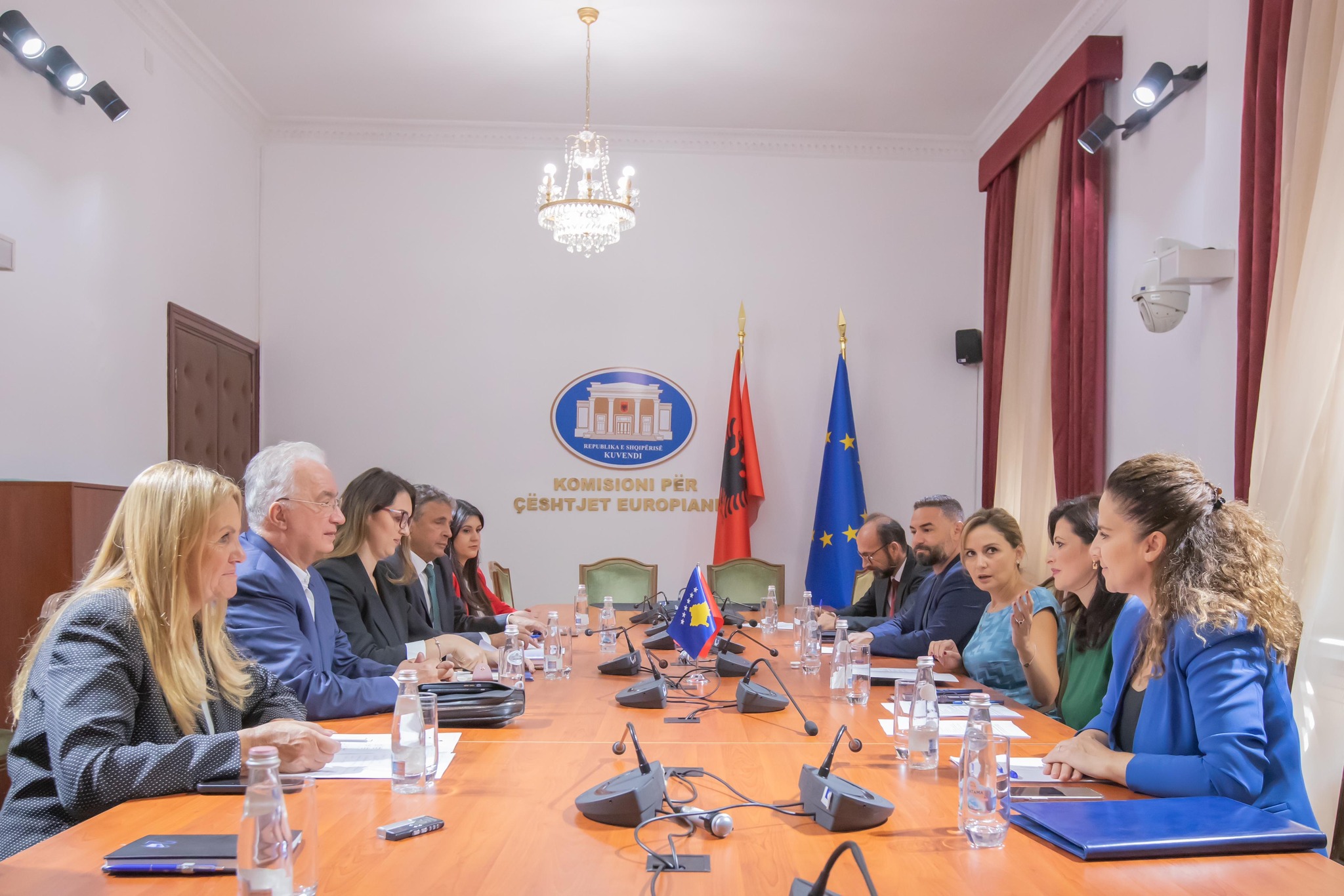 Delegacioni i Komisionit për Punë të Jashtme dhe Diasporë, i kryesuar nga Arbëreshë Kryeziu-Hyseni, kryetare e komisionit, së bashku me anëtarët Xhavit Haliti, Yllza Hoti dhe Time Kadrijaj, gjatë vizitës zyrtare në Tiranë kanë takuar në Komisionin për Politikën e Jashtme, Komisionin për Çështjet Evropiane, deputetë dhe përfaqësues të Kuvendit të Shqipërisë në organizata ndërkombëtare si zëvendësministren e Ministrisë për Evropën dhe Punët e Jashtme, Artemis Malo.