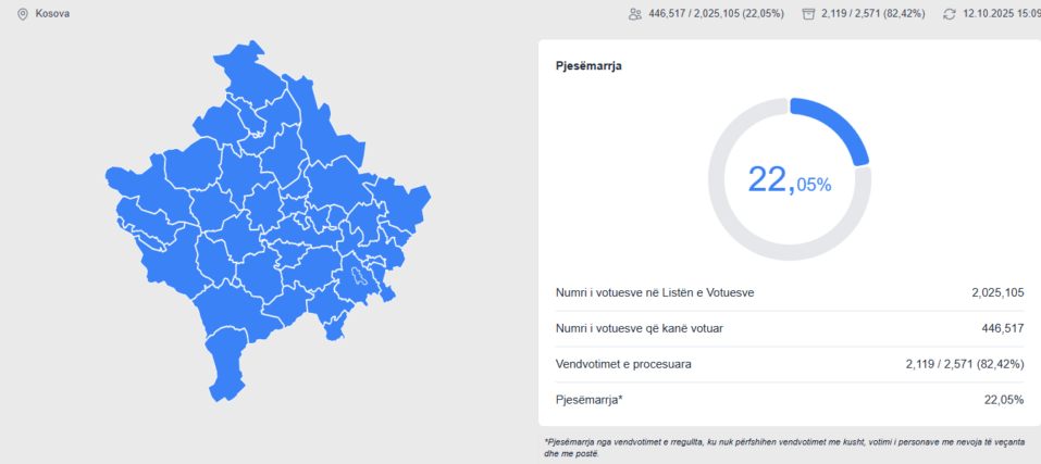 Deri në orën 15:00, 22.05 për qind e qytetarëve me të drejtë vote kanë votuar nëpër komunat përkatëse.