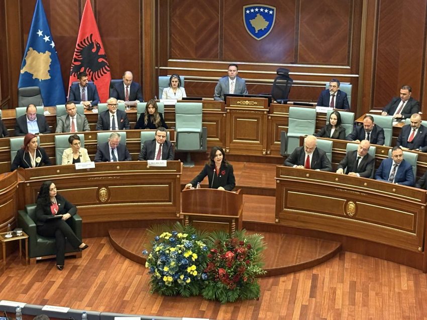 Kryetarja e Kuvendit të Shqipërisë, Elisa Spiropali, ka mbajtur fjalën e saj në mbledhjen e përbashkët të dy kuvendeve.