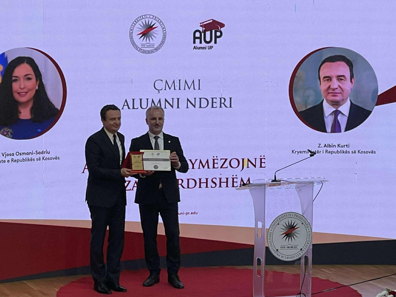 Albin Kurti, kryeministër në detyrë i Kosovës, ka pranuar të martën titullin “Alumni Nderi” të Universitetit të Prishtinës.