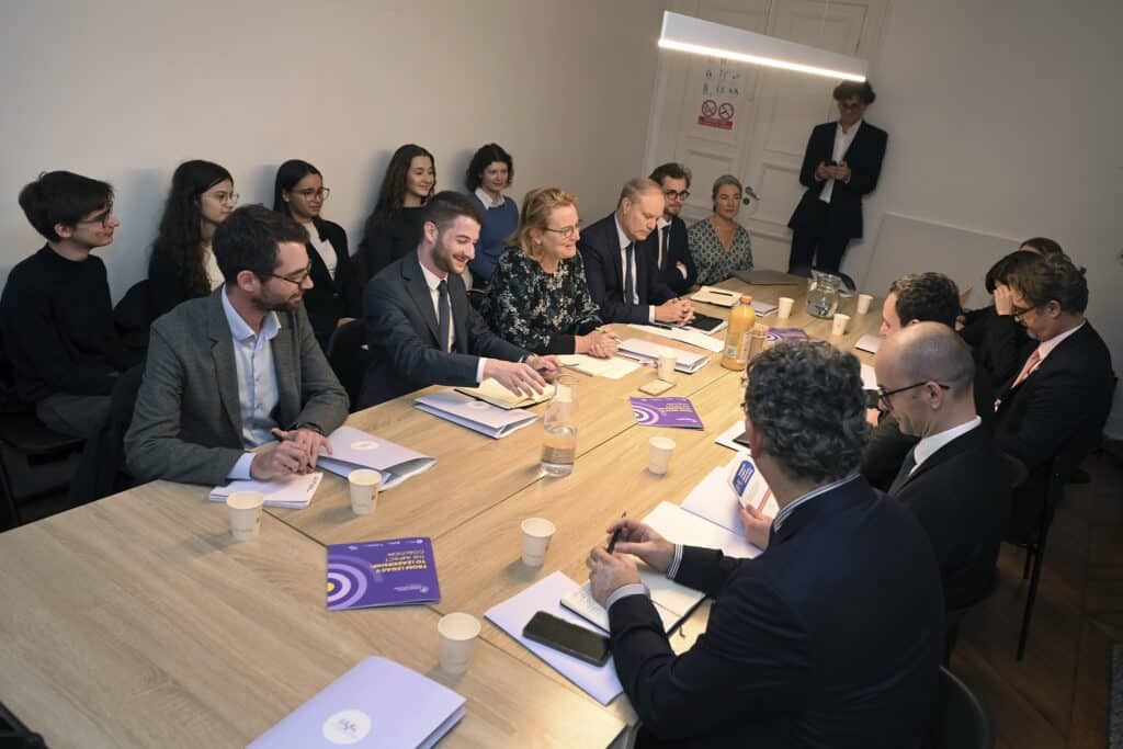 Në këtë tryezë kryeministri ishte i shoqëruar nga zëvendësministri në detyrë i Punëve të Jashtme dhe Diasporës, Kreshnik Ahmeti, dhe ambasadori i Kosovës në Francë, Mehdi Halimi.