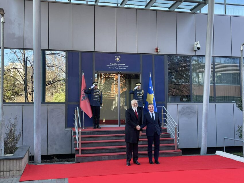 Kryeministri i Kosovës, Albin Kurti, në një ceremoni zyrtare ka pritur kryeministrin e Shqipërisë, Edi Rama.