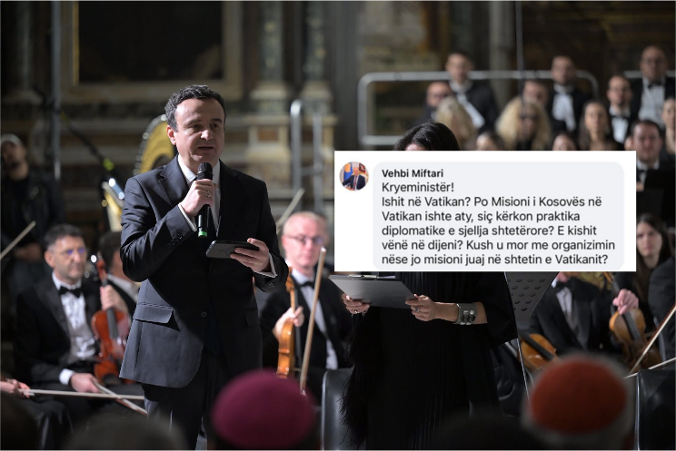 Shefi i Misionit të Posaçëm të Kosovës në Vatikan, Vehbi Miftari, ka reaguar publikisht ndaj kryeministrit në detyrë, Albin Kurti, pas pjesëmarrjes së tij në një koncert të Korit të Operës së Kosovës në Bazilikën Santa Maria in Aracoeli.