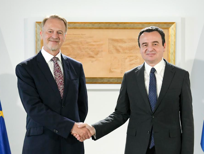 Kryeministri Albin Kurti ka pritur në takim shefin e ri të Zyrës së Bashkimit Evropian (BE) në Kosovë, ambasadorin Aivo Orav, me të cilin ka diskutuar për marrëdhëniet ndërmjet Kosovës dhe BE-së bazuar në vlerat e përbashkëta dhe avancimin e lirive themelore.