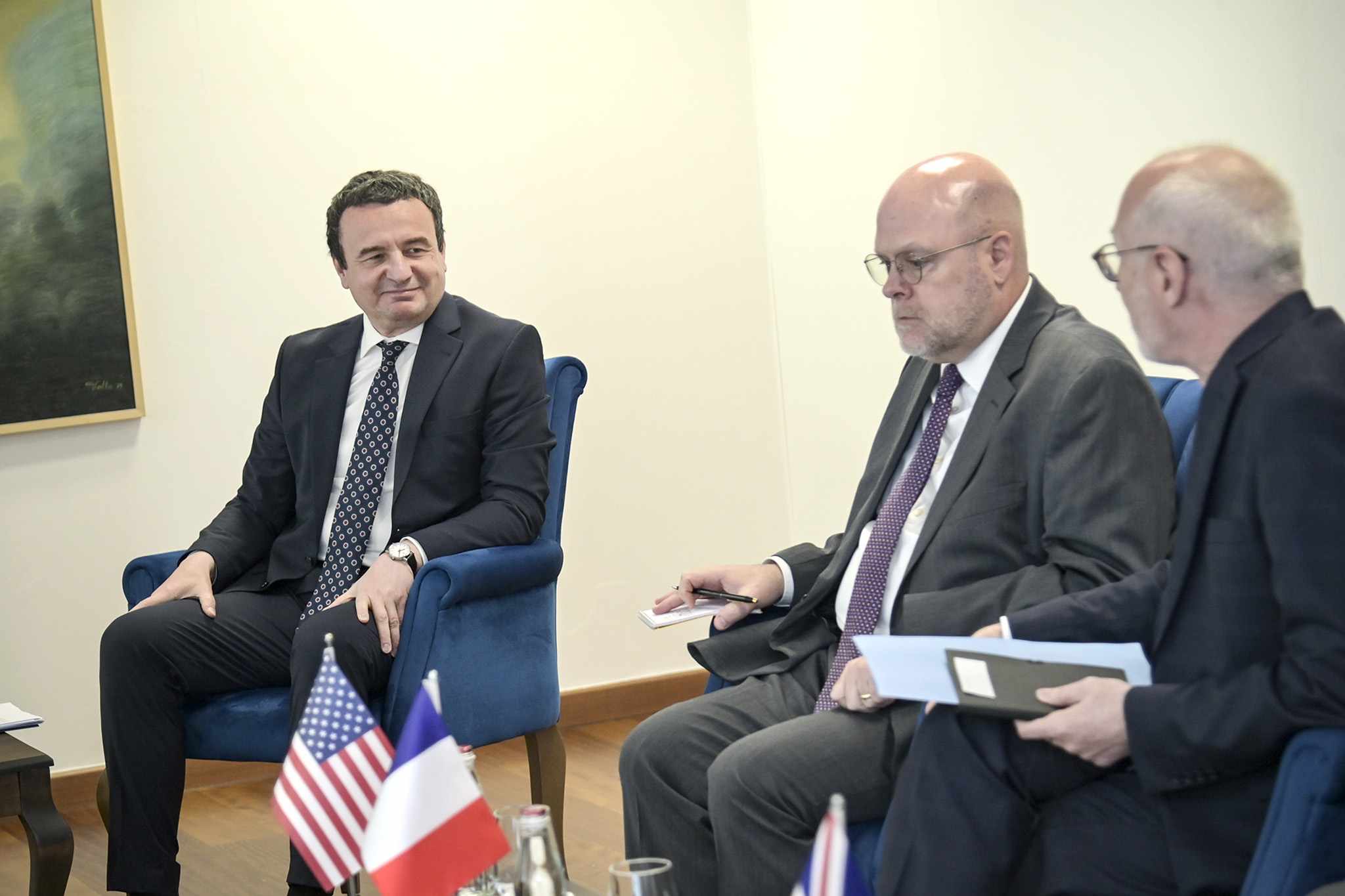 Kryeministri Albin Kurti, i shoqëruar nga zëvendëskryeministri i parë, Besnik Bislimi dhe zëvendësministri i Punëve të Jashtme dhe Diasporës, Kreshnik Ahmeti, takoi sot ambasadorët dhe përfaqësuesit diplomatikë të shteteve të QUINT-it dhe shefin e Zyrës së Bashkimit Evropian në Kosovë.