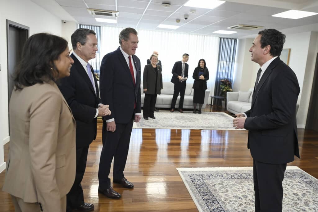 Kryeministri në detyrë, Albin Kurti, i shoqëruar nga zëvendësministrja në detyrë e Punëve të Jashtme dhe Diasporës, Liza Gashi, ka mirëpritur të hënën një delegacion të Shteteve të Bashkuara të Amerikës, të përbërë nga kongresisti republikan Mike Turner dhe kongresisti demokrat Donald Norcross.