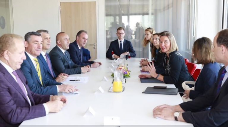 Zëdhënësja e Komisionit Europian për Politika Fqinjësore dhe Negociata të Zgjerimit, Maja Kociancic, i ka publikuar dy fotografi në llogarinë e saj në “Twitter”, ku shihet delegacioni i Kosovës në takim me përfaqësuesen e lartë të BE-së, Federica Mogherini.