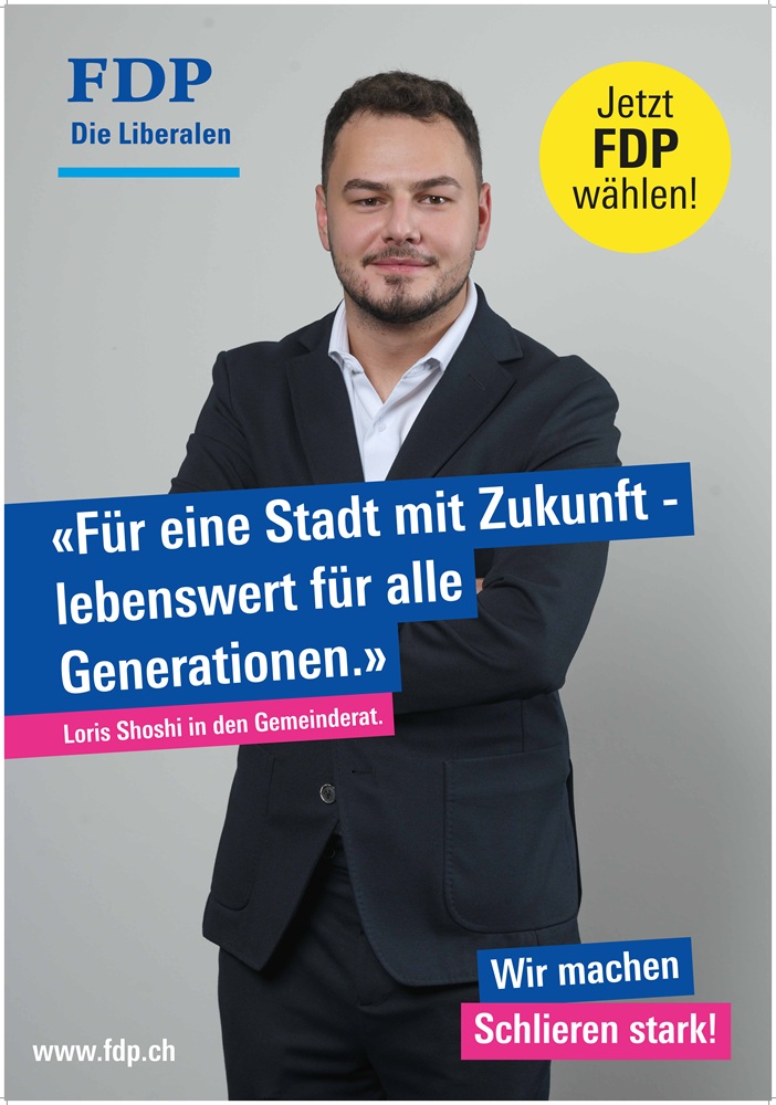 Loris Shoshi: Kam vendosur të angazhohem në politikë sepse dua të kontribuoj drejtpërdrejt në zhvillimin e komunitetit tim dhe të sjell ide të reja për qytetin e Schlierenit. Zgjodha FDP-në sepse besoj te vlerat e saj për ekonomi të qëndrueshme, liri individuale dhe mundësi të barabarta për të gjithë. Gjithashtu, kam ardhur tek FDP edhe për shkak të rekomandimit të zotit Perparim Avdyli, i cili më inkurajoi të bashkohem me këtë parti, duke theksuar se këtu mund të kontribuoj aktivisht dhe të zhvilloj interesin tim për politikën lokale.