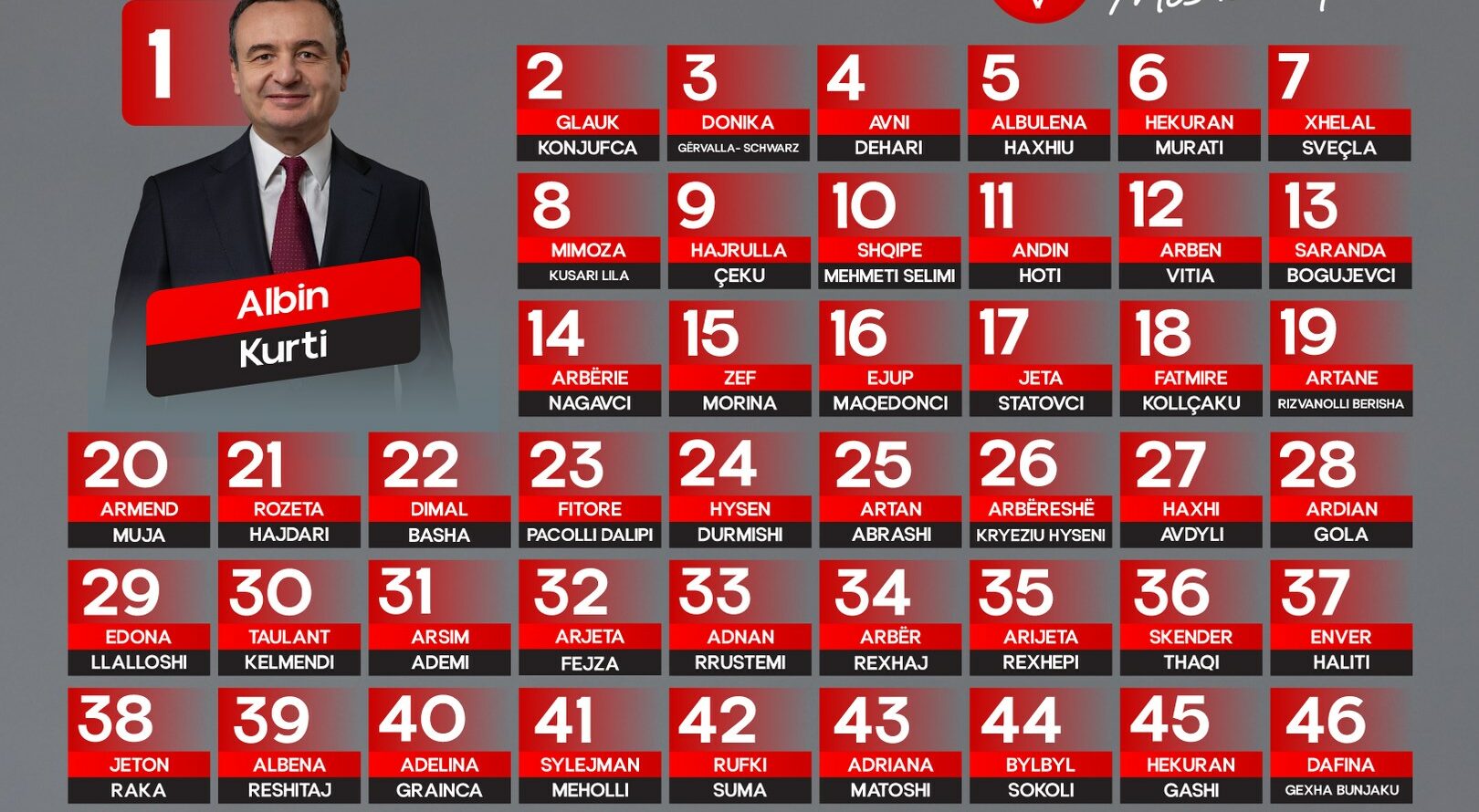 Lëvizja Vetëvendosje ka publikuar listën me numrat e kandidatëve për deputetë.