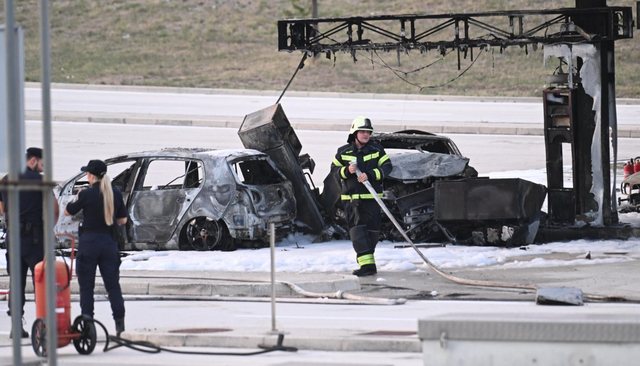 Një makinë “BMW” është përplasur me një gjenerator në një pikë karburanti, duke bërë që të shpërthejë në flakë. Siç raportohet, shoferi i kësaj makine ka ndërruar jetë pasi është djegur brenda mjetit. Po ashtu, mes makinave të djegura është edhe një “Citroen” me targa shqiptare.