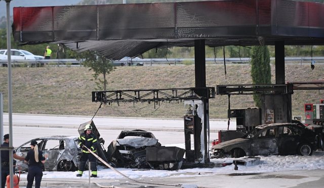 Një makinë “BMW” është përplasur me një gjenerator në një pikë karburanti, duke bërë që të shpërthejë në flakë. Siç raportohet, shoferi i kësaj makine ka ndërruar jetë pasi është djegur brenda mjetit. Po ashtu, mes makinave të djegura është edhe një “Citroen” me targa shqiptare.