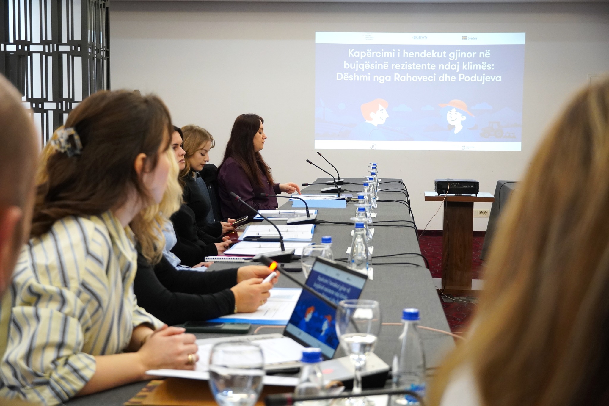 U mbajt tryeza e diskutimit “Gratë në Bujqësi përballë Ndryshimeve Klimatike: Sfidat dhe Mundësitë në Rahovec dhe Podujevë”, ku u trajtuan disa nga sfidat me të cilat gratë fermere përballen çdo ditë, si dhe mundësitë për zhvillimin e politikave bujqësore më gjithëpërfshirëse dhe të ndjeshme ndaj klimës.