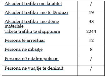 Gjatë kësaj periudhe kanë ndodhur 19 aksidente me të lënduar dhe 33 me dëme materiale.
