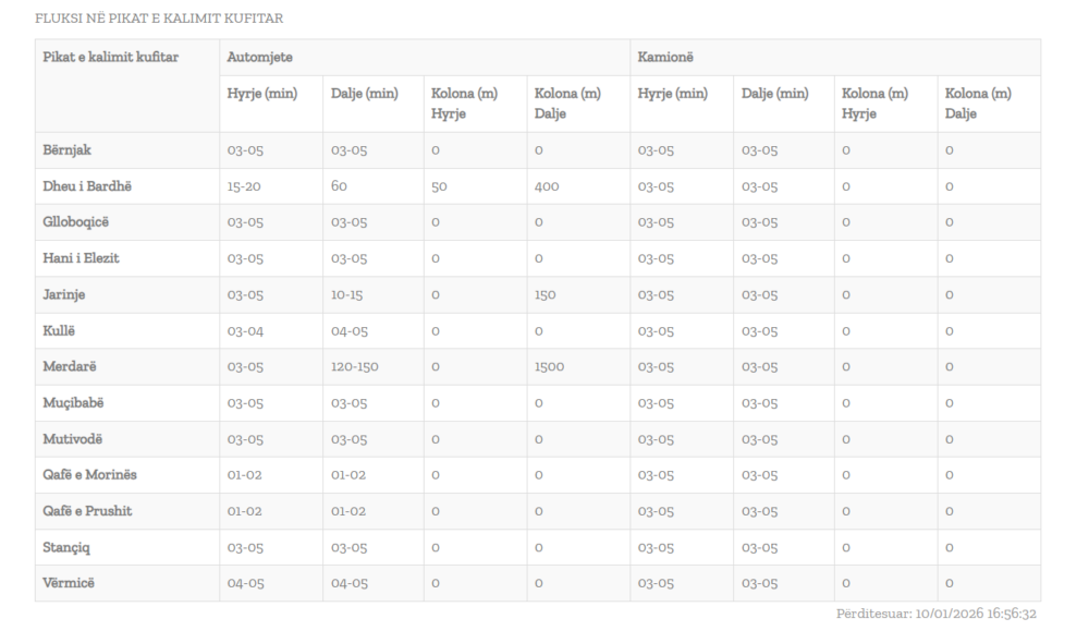 Ministria e Punëve të Brendshme ka përditësuar të dhënat për gjendjen në pikat kufitare të Kosovës.