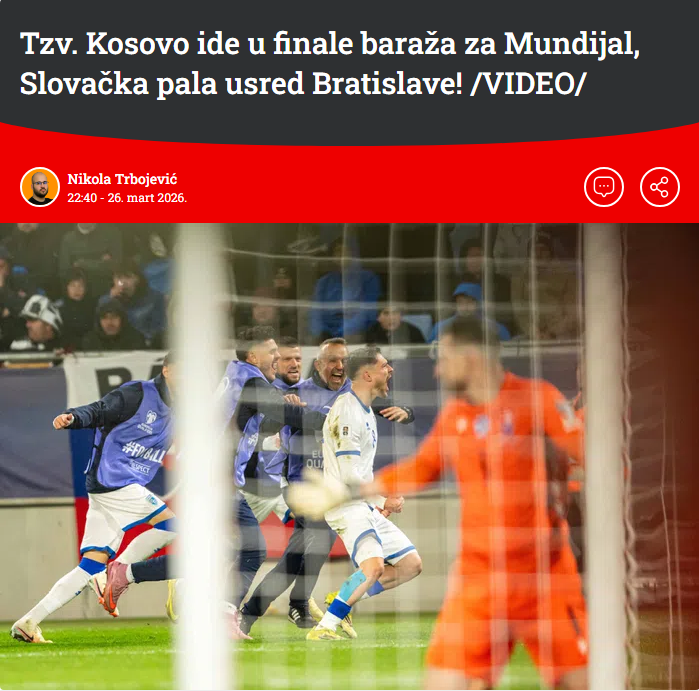 E nëpër mediat serbe tashmë ka filluar “zija”. Ato po e përmendin humbjen e Kosovës, duke iu drejtuar me termin skandaloz: “E ashtuquajtura Kosovë”.