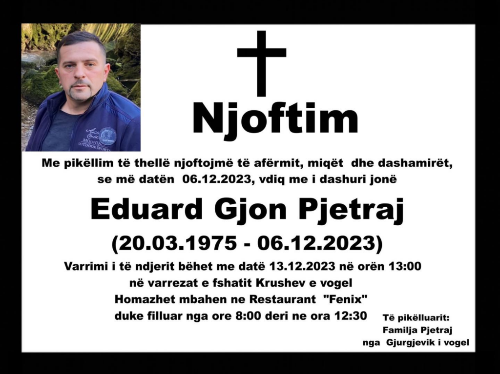 Mërgimtari nga Gjurgjeviku i Vogël i Klinës, Eduard Pjetraj në moshën 48-vjeçare ka humbur jetën tragjikisht në vendin e tij të punës në Gjermani.